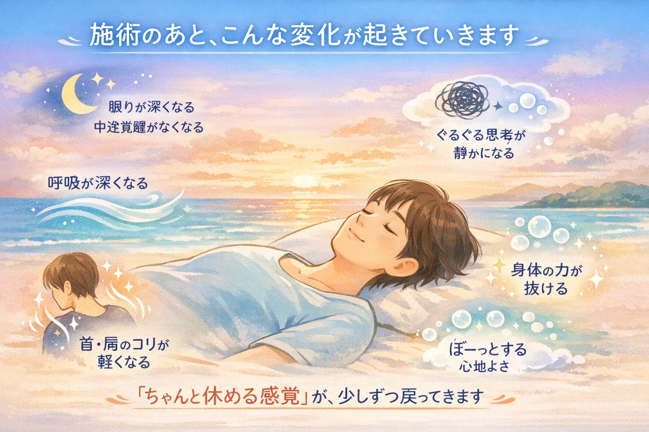 初回で変化を感じる方も多いですが、本当に楽な状態を安定させるには、数回の施術が効果的です。