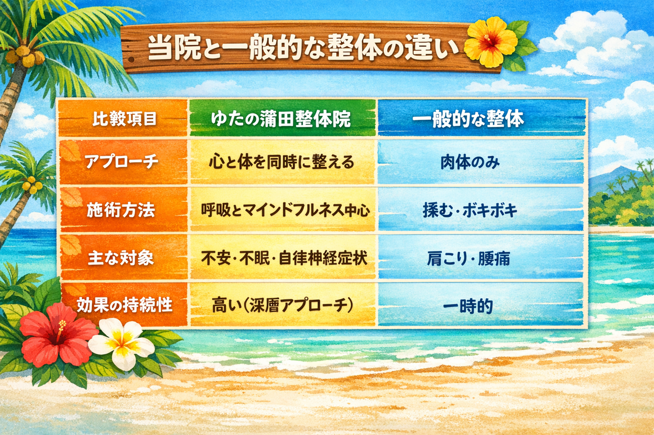「ゆたの蒲田整体院」では、強くしない・急がせない整体で、