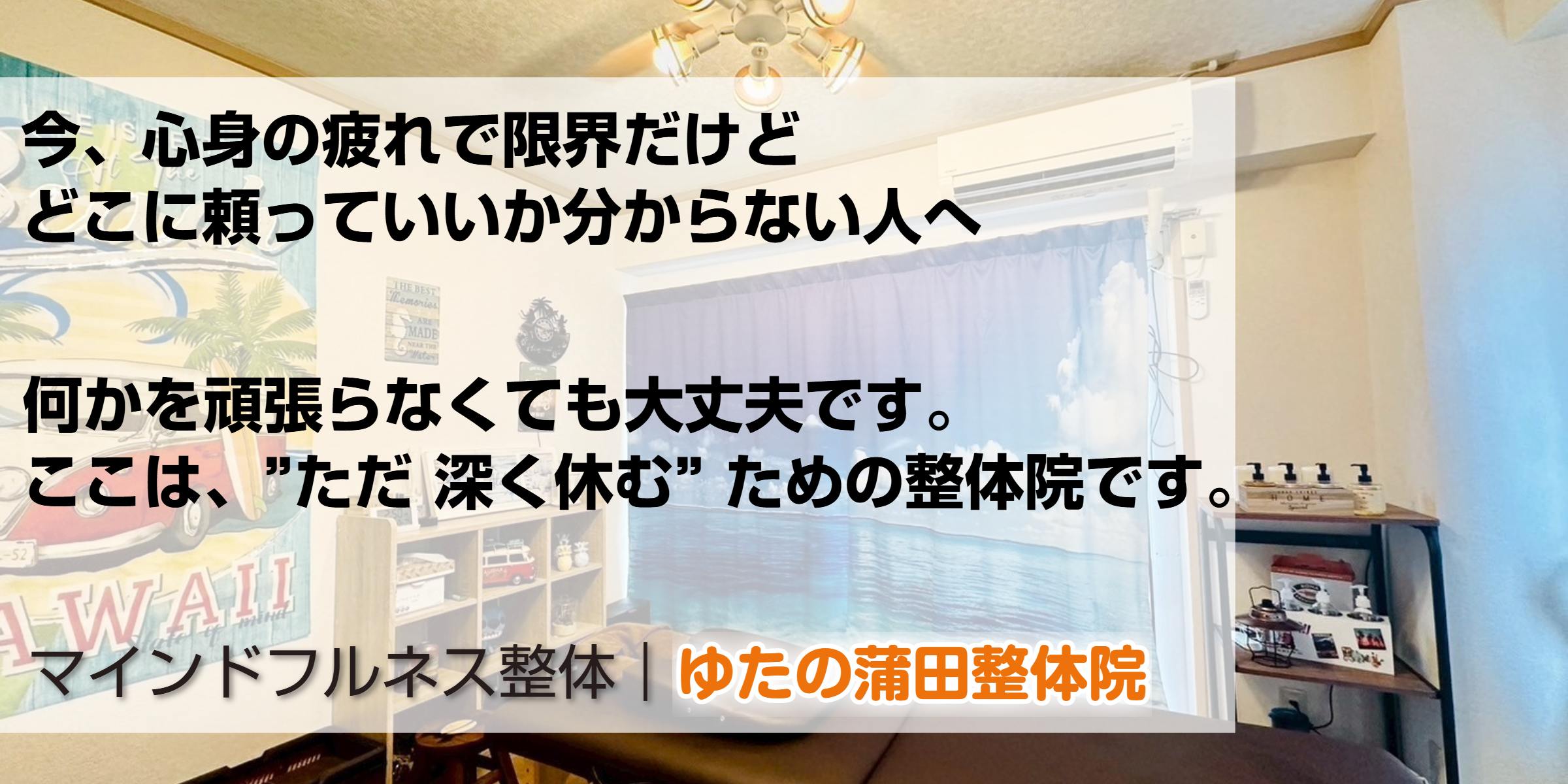 大田区蒲田のマインドフルネス整体|深く休む整体なら