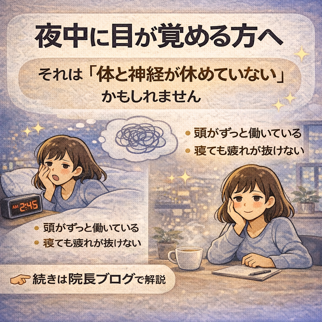 この記事では、眠れない原因と、今日からできる対処法、そして整体でできるサポートについてお伝えします。