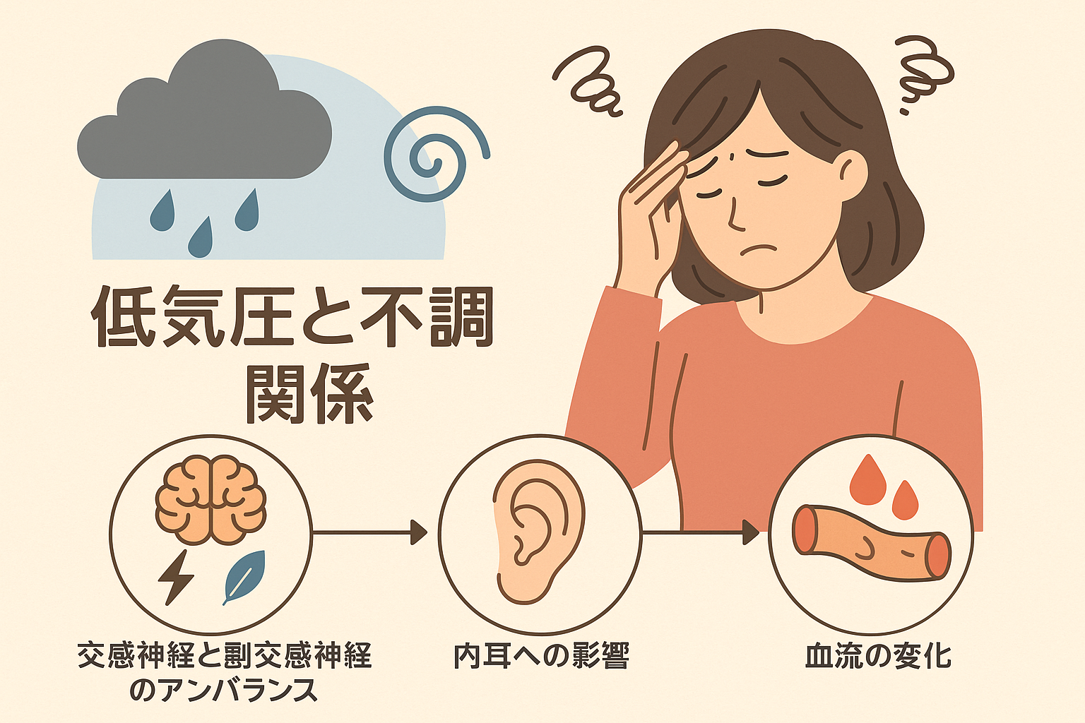 気圧が下がると、体は“酸素が少なくなった”と勘違いして交感神経が優位になります。