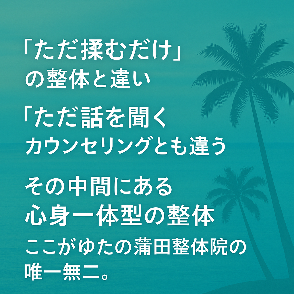 ゆたの蒲田整体院は、痛みだけでなく“あなた自身”に寄り添う整体院です。