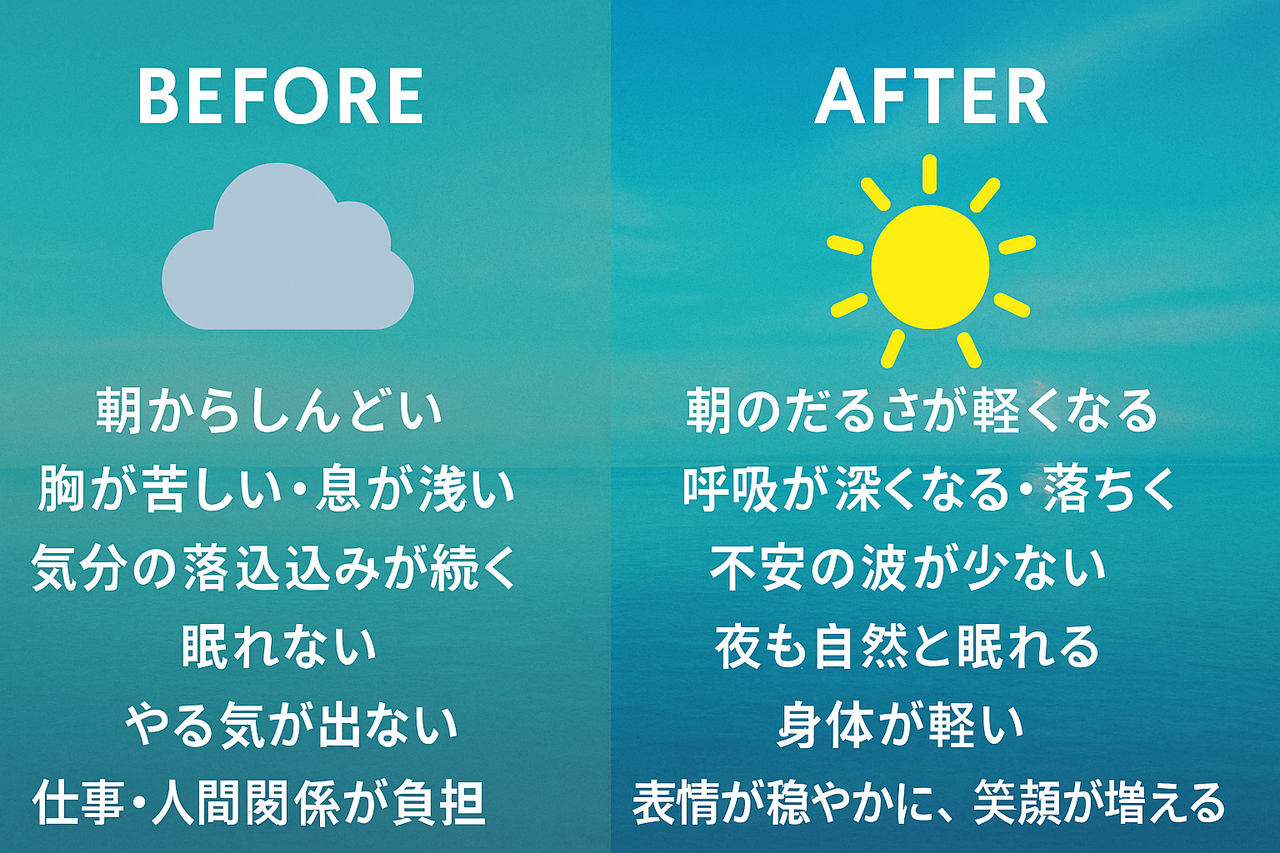 長年、どこに行っても改善せず、薬に頼りながら我慢してきた方が「ようやく希望が持てました」とおっしゃることが増えています。もし今、不安や不調で苦しい毎日を送っているなら――