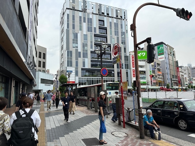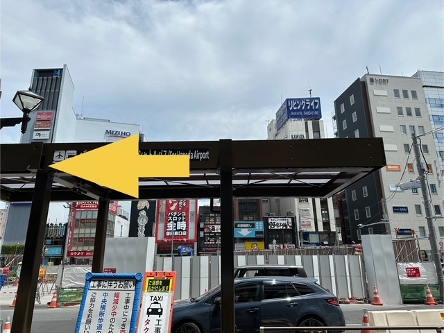 すると、駅前ロータリー(バス乗り場)に出ますので、建物沿いに左に進みます。