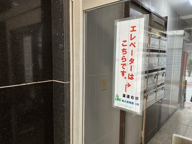 入ってすぐに階段がありますが、整体院は5階なので、エレベーターを使いましょう。