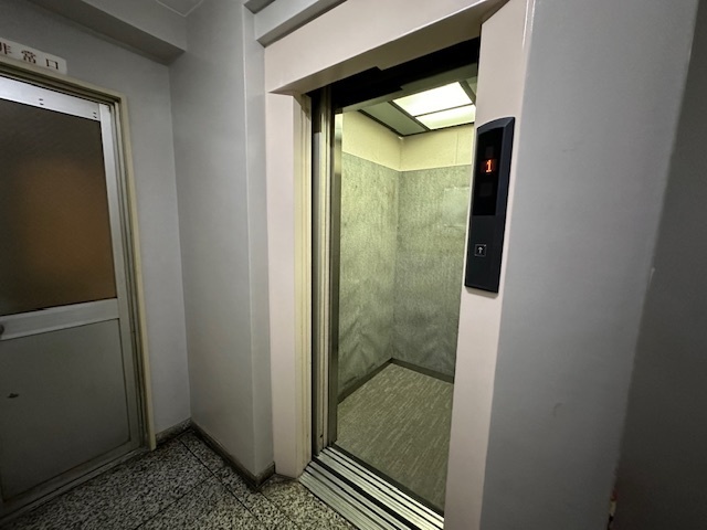 5階に着いたときのエレベーターからの眺め、もう入口が見えますね。